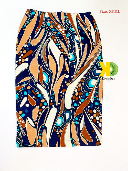 Blue Bubbles African Print Pencil Skirt (XSmall)